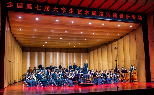 在演奏专场中,国乐系青年国乐团的同学们带来一首极具民族色彩和人文情怀的作品--《国风》,乐曲以传统琴曲“梅花三弄”的主题为动机,双主题变奏交织,层层递进、跌宕起伏,大家将乐曲中的坚韧、奋进和抗争淋漓尽致地表现出来,得到观众们的热烈掌声和广泛好评。