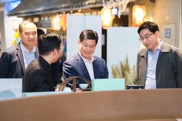 签约仪式前,干武东一行参观考察了M511光影汇8K多功能沉浸探索空间《深空未来》、VR体验项目《永恒的巴黎圣母院》、环境音乐剧《茶无此人》、未来影城以及古建与非遗特展、历史经典产业传承创新主题展等。