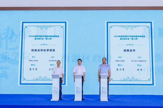 7月29日上午,2024年度西湖区文创高地建设推进会暨文创大会(第二季)在之江文化中心浙江省博物馆举办。学校与西湖区政府签署合作办学框架协议,双方将深化校地合作,共享共建区域优质教育资源,共同打造合作办学新模式。