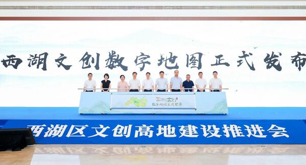 干武东、王均寅与省市相关部门负责人及西湖区四套班子主要负责人等共同发布了西湖区文创数字地图。