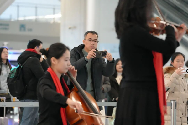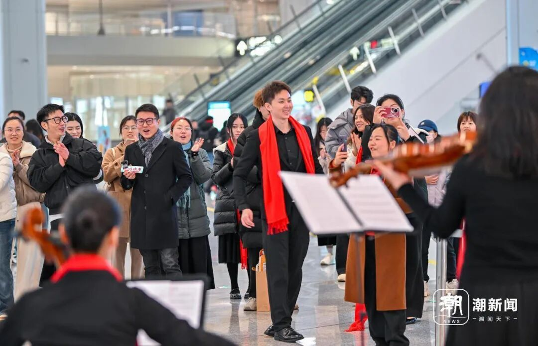 这场别开生面的快闪演出,是浙江“文艺赋美”工程的生动实践。往来旅客纷纷驻足,或举着手机定格精彩瞬间,或拿起画笔描摹美好回忆,或跟着旋律轻声哼唱、动情歌唱。奔波的疲惫,在悠扬动听的乐声中悄然消散;温暖的慰藉,于归家的旅途上油然而生。这正是艺术的真谛——源于生活,更要服务生活,用美的力量滋养人心。