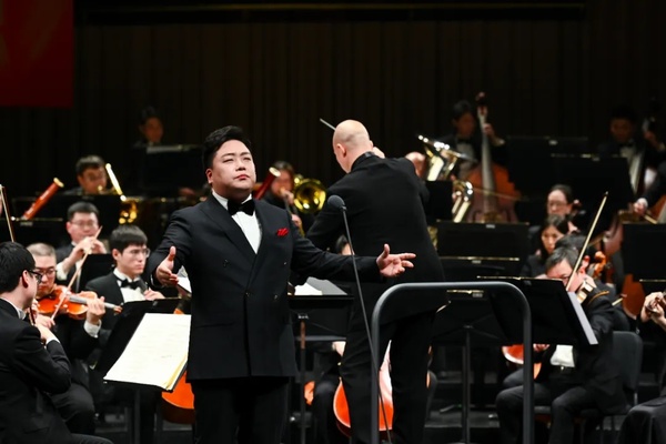 音乐会以一曲激昂的《鲁斯兰与柳德米拉》序曲激昂开篇。随后,古筝协奏《望云赋》以清透灵动的音韵勾勒出云卷云舒的东方意境,而歌剧选段《爱永在》则以深情的旋律吟咏出真挚隽永的家国情怀。琵琶协奏《丝路飞天》以繁复的指法与丰富的音色变化,再现丝绸之路上的风物与遐思。《鸟儿在风中歌唱》以极具艺术感染力的演绎,将深切而克制的悲情浸透于每个音符之中,直抵人心;《苗岭飞歌》则一转情绪,以清亮悠扬的嗓音唤醒山野间蓬勃的生命气息,宛如晨光穿透层林。钢琴与乐团奏响《保卫黄河》,铿锵有力的琴声如浪潮奔涌,澎湃的激情与厚重的民族气魄震撼人心。普罗科菲耶夫《第三钢琴协奏曲》以现代性的节奏张力与抒情段落交织呈现,展现出技巧与音乐的深度交融。歌剧《塞维利亚的理发师》选段《快给大忙人让路》则以诙谐生动的舞台表现与敏捷华丽的演唱,挥洒出鲜活的戏剧光彩。特别呈现的二重唱《恐吓吧,激烈的言辞》(选自歌剧《命运之力》),由两届“金钟冠军”联袂演绎,歌声中激荡着命运的对抗与交织,张力迭起,将全场情绪推向高潮。