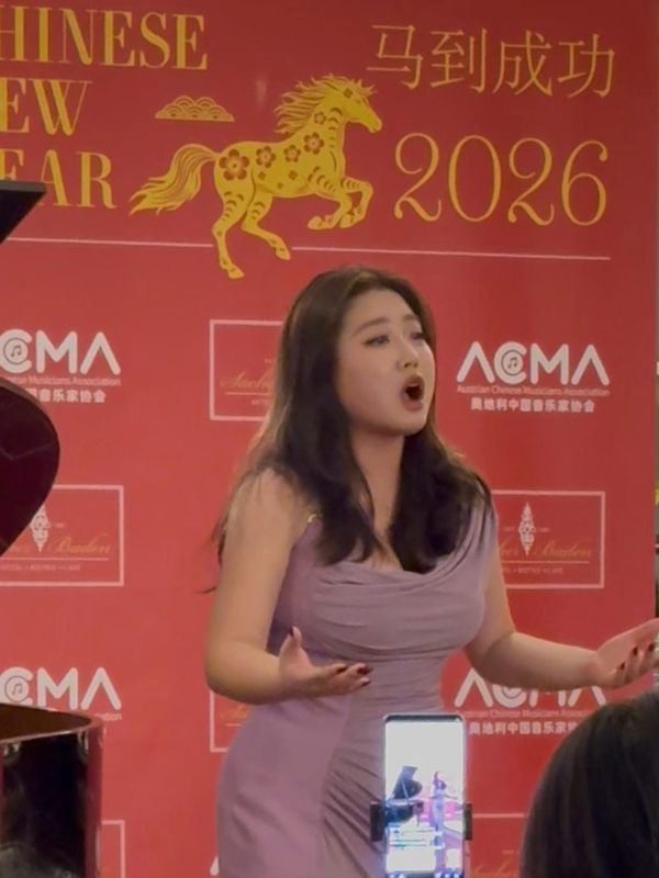 据欧洲时报报道,当地时间2月19日,在奥地利萨赫酒店举办的奥地利中国音乐家协会2026马年新年庆典上,浙江音乐学院声歌系二年级学生虞畅唱响中国古典诗词艺术歌曲《山之高》。在这场汇聚中奥政、艺、商界近百位嘉宾的文化活动中,她以婉转歌声传递新春祝福,让中华优秀传统文化在欧洲舞台绽放光彩。